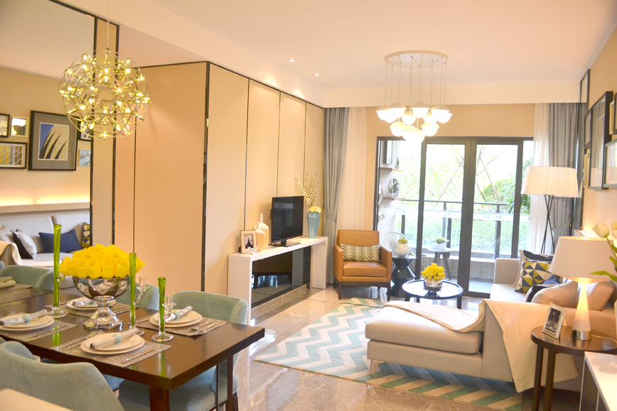 客厅与餐厅相连,同时客厅还毗邻超大景观阳台,可以令视野无限延伸,享受窗外美景。