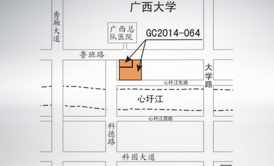7月23日,位于南宁市鲁班路西面、科德路南面的编号为GC2014-064地块,由南宁禾田信息港发展有限公司以底价210万元/亩揽获,成交总额10828.8432万元(约1.08亿),总面积34377.28平方米(折合51.566亩)。