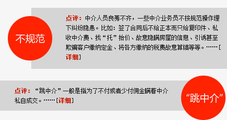 二手房买卖是一种特殊的商品交易,因其金额大及交易周期长及交易流程专业复杂(签约、贷款、评估、过户、还贷、付款、交房等),一不小心就容易出现纠纷,买卖双方最好还是要通过房屋中介来买卖,不过在选择房屋中介公司和房产经纪人的时候,消费者可要多留个心眼。……[详细]