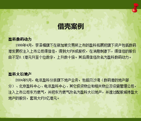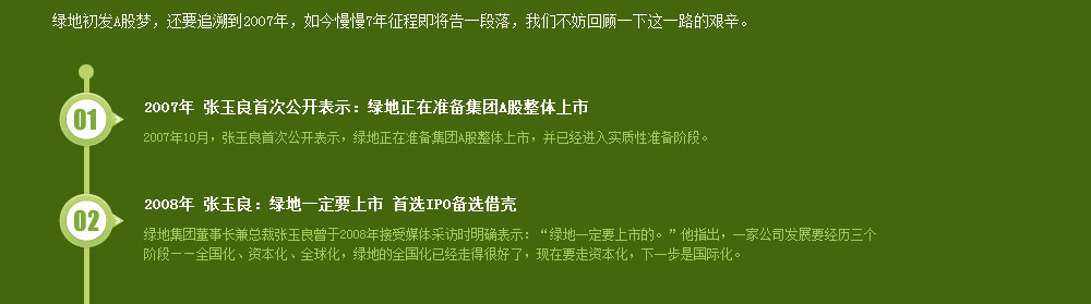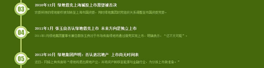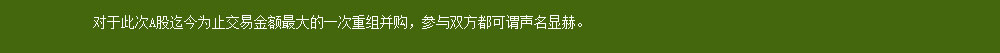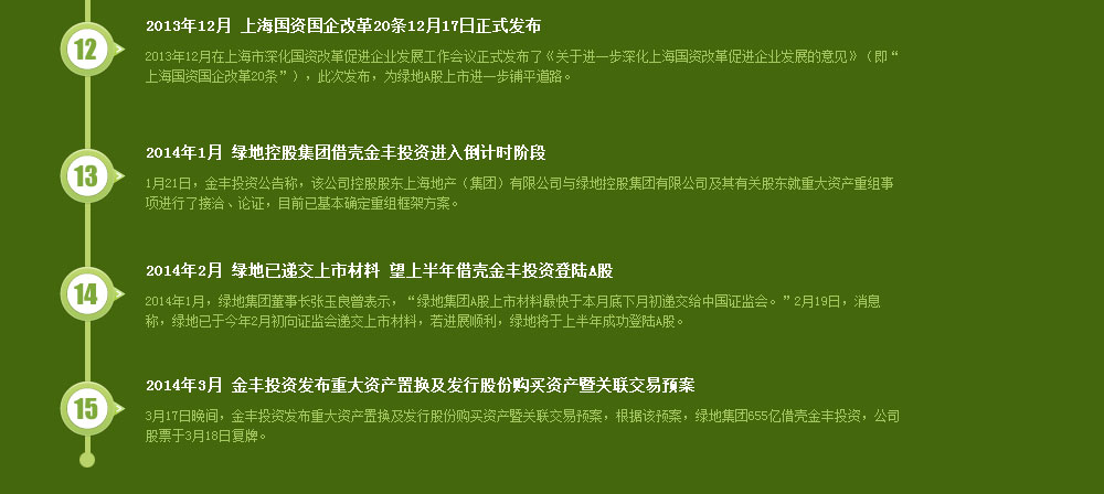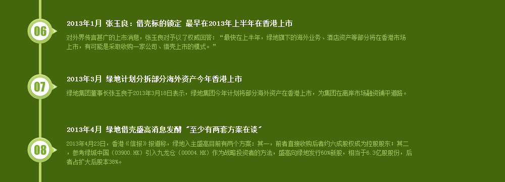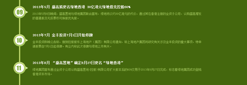 | 对于绿地集团与金丰投资的此番大举动,同样引起券商们的疯狂猜想。某证券并购部负责人直言,绿地集团是监管层于2010年10月暂停房地产公司借壳后的首单案例,其示范效应自然不能低估。在某种程度上,这或表明地产公司借壳有可能获得监管层放行。 该负责人表示,实际上,有意借壳的地产公司远不止绿地集团一家。如果借壳条件进一步明示的话,绿地集团或将掀起新一轮的地产公司借壳潮。不过,鉴于绿地集团有强大的国资背景作支持,绿地集团能够做到的事情,并不代表其他中小房地产企业也可以做到。 但愿如一位业内人士对新华网记者说的那样,“在资本市场暗流涌动,地产市场不慎明朗的今天,希望‘绿巨人’今天的一小步,会成为未来一段时间地产界与证券界的一大步”。 |