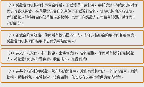 “以房养老”需要透明、公正的法治环境。“以房养老”牵涉到房地产业、金融业、社会保障、保险以及相关政府部门,对这些领域的运作质量要求相当高。
