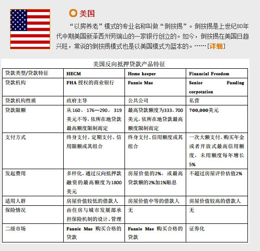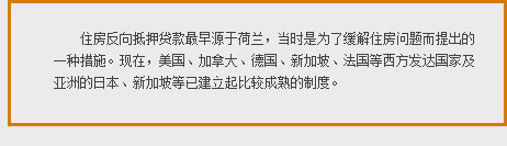 | “以房养老”金融产品推出的最大阻力来自于金融机构,其中担心房价下行是主要原因。一位保险从业者说,这项工作的“难度在于,对国内房地产市场价格中长期走势、人均预期寿命等关键因素的难以预测。对银行、保险公司等机构来说,倒按揭与正按揭恰恰相反,时间越长风险越大。 |