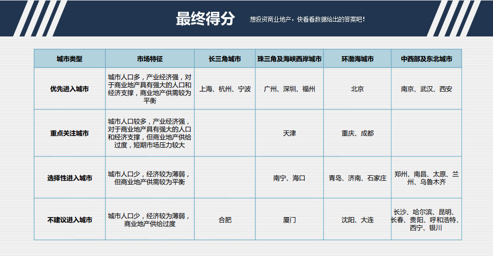 | 深圳、上海、北京、厦门、广州、南京城镇化水平高,达到80%以上,发展潜力小,对商业地产发展构成负面影响,而中西部地区城市则有更大潜力。 |