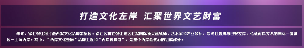 将新建众多展示馆、美术馆、演艺中心、形成天幕舞台、水上剧场、浦江T台、星光大道等文化亮点,打造中国最大户外艺术展区。目前已成功举办首届上海西案音乐节、“水上阿秘厘”音乐演出。西案美术馆、油罐演艺中心等项目正在规划中。
