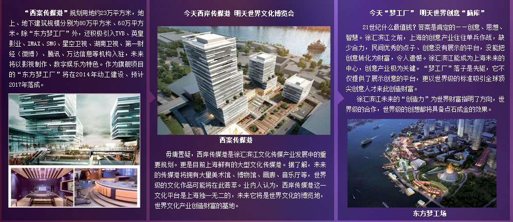 在规划之初,业内人士就认为,徐汇滨江必须要有别于一般的CBD,打造和以前纯粹的钢筋水泥的建筑感觉不同的区域。只有经济、文化、航运、产业相互作用,才能最大限度的创造城市财富。