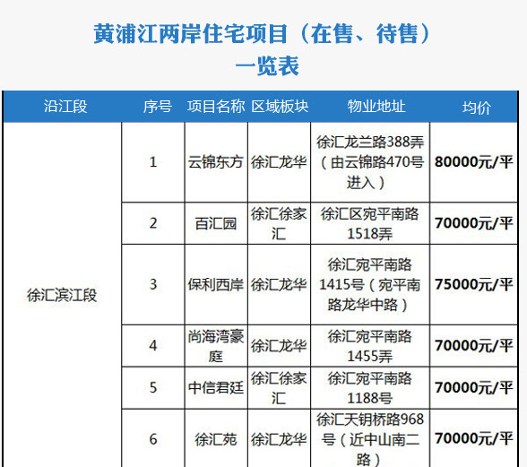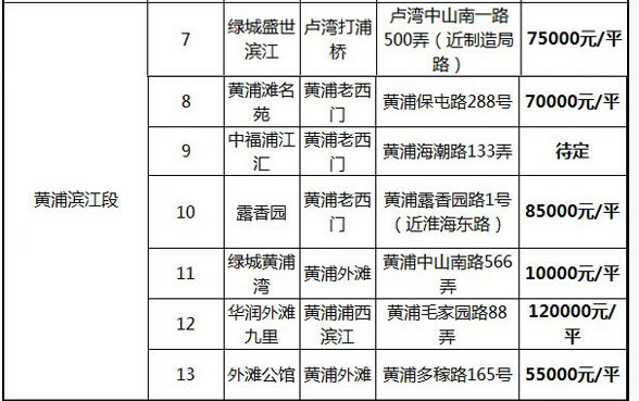 | 黄浦江沿线详细规划请参阅(http://www.hpjbanks.com/plan/guihua_list.asp?Article_Type=详细规划) (以上规划信息来自上海市人民政府黄浦江两岸开发官方网站) |