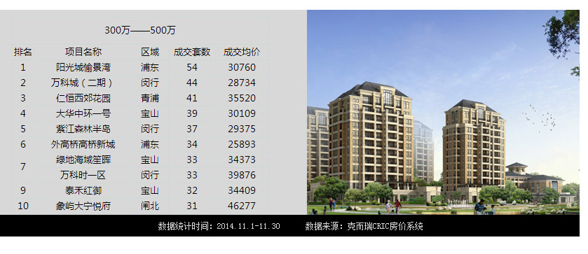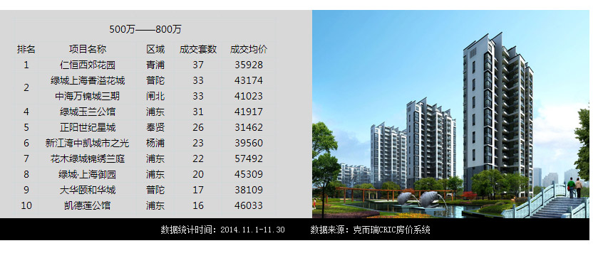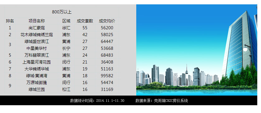 大部分在5万以上,个别位于城市外围的高端住宅除外(上海星河湾、绿城兰园)。因此可以说地段决定了单价,其中滨江的绿城•黄浦湾、绿城盛世滨江、万科翡翠滨江单价较高,而这三个项目在滨江住宅中也是凭借极大的价格优势取胜上榜的。在拥有一线滨江的豪宅中,绿城黄浦湾9万开头的单价是具有很大竞争力。再说到上海星河湾和绿城兰园,这两个项目都是以产品力制胜的:上海星河湾的经典产品单价只需3.6万,只需看客户是否可以接受颛桥这个地段;绿地兰园则是凭借全石材打造的社区外立面和高品质园林,弥补了区域差的缺憾。