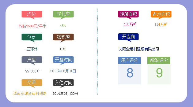 绿城沈阳全运村位于全运村地块,项目为现房销售,2013年12月入住;目前暂时没有新建项目,在售的为精装修小高层和洋房产品,小高层均价每平米9500元,在售户型面积区间为110-180平米,洋房均价每平米16800元,在售户型面积为140-300平米,目前购房全款96折,贷款98折。记者走访之后发现,绿城沈阳全运村是很注重细节的,项目在全运会期间已经交付使用,全运会结束以后,绿城物业服务集团要求所有使用过的园区必须保持整体的园区环境。这样的工作一直要坚持到业主正式入住。 绿城沈阳全运村的绿化率达到了45%,容积率为1.5,属于低密住宅,业主居住的舒适度会很不错。而且,记者从绿城物业服务集团了解到,项目要求园区内不能有落叶停留,道路积水不可停留5分钟以上,雨停后15-30分钟之内完成一切园区清扫工作;而且除雪时不使用任何化学药剂;除了统一固定的清扫外,还会安排保洁人员分区域巡逻式清扫,并其安排专员随时、反复的进行检查确保达到承诺的标准。这样的物业服务可以保障业主的生活环境健康、自然。 目前项目周边的路况很好,自驾出行很便利;但是周边的商业配套较少,短时间内购物恐会受到一定的影响。在售户型面积较大,属于改善型住宅,周边区域的发展还需要一段时间,项目较适合投资。。