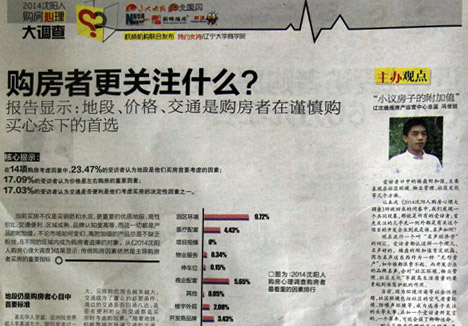 最近,由新华房产沈阳站、辽宁大学商学院、辽沈晚报、新峰地产联合发起的“消费者购房需求调研问卷”给出了部分答案。