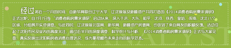这次针对于沈阳的"消费者购房需求调研问卷",旨在了解百姓购房心声,探寻隐藏在数据背后的沈城楼市。