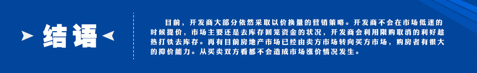 取消限购还是市场低迷所致,购房者观望情绪较重。政府取消限购调节市场,在楼市“金九银十”的时间节点。取消限购对楼市有一定的利好消息,但不一定有决定性作用,市场不会出现销量猛增的情况。 |