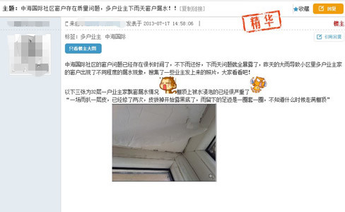 冰火两重天,尽管业绩方面成绩单华丽,但另一方面中海全国多个项目却问题不断,饱受诟病。而开发商的中海地产态度冷淡、甚至漠视业主的诉求。人们不禁质疑:身为大型央企,社会责任何在?[详细] |