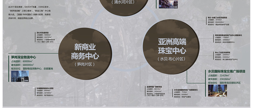 2010年罗湖制定了“建设国际消费中心行动计划”,明确十二五期间将投资2500亿打造国际消费中心,总部基地和服务业基地(一个中心、两个基本地)的战略定位,在未来5—10年,罗湖拟通过城市更新,将累计完成固定资产投资2500亿元,新增产业空间1430万平方米,意味着从产业空间上,再造一个罗湖。