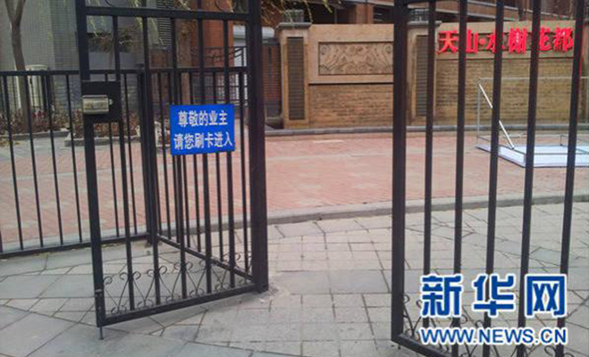 记者注意到,虽然小区入口安全门上贴有"请业主刷卡进入"的警示牌,但安全门却一直是敞开状态。