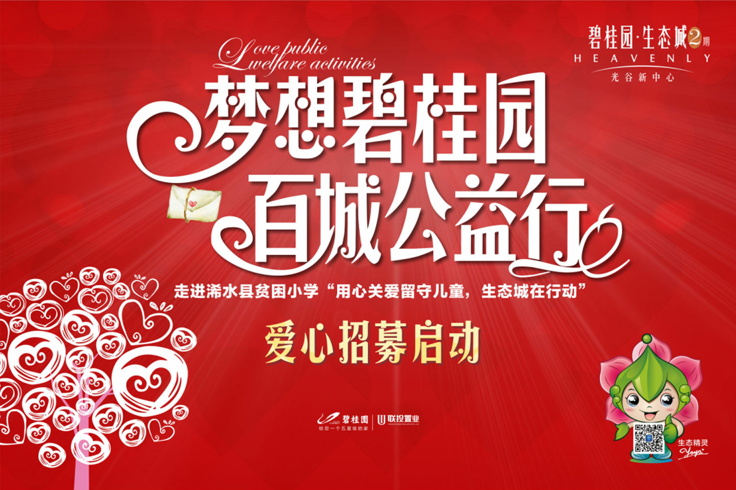2013年12月16日,碧桂园志愿者湖北区域慈善行成功举行。殷切关怀、数万元书籍、过冬棉被、运动器材……关爱浠水留守儿童,并邀请武汉大学新闻与传播学院副院长程明教授在黄冈中学与“国华班”学子分享励志心得,鼓励他们阳光成才。