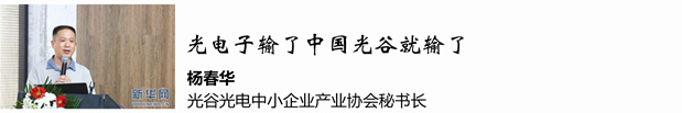 光谷光电中小企业产业协会秘书长杨春华作主题演讲,跟与会企业分享了《中国光电产业生态圈及市场新发展报告》,主要介绍了光电产业的生态圈及瓶颈、光电产业的市场创新需求、光电产业的市场创新成果三方面的内容。杨春华认为,只有用创新创业的办法才能解决企业、行业和国家的问题,才能解决光谷、解决自己的企业,才能解决武汉万亿倍增的增量问题。同时,光电信息产业要有创新创业的平台,首先需要需要解决产品销售问题,需要解决产业、企业和人才之间的连接问题、黏度的问题。[详细信息]