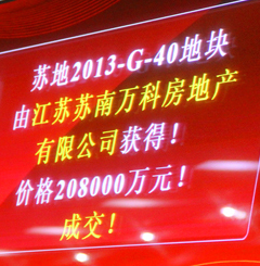 竞拍一开始,此地块就陷入港龙集团、旭辉集团及顺升企业三家房企的激烈争夺中,经过多番竞价,港龙集团率先退出争夺,旭辉与顺升继续连番叫价,而顺升企业每次举牌毫不犹豫,大有势在必得之势。最终顺升企业以总价25亿如愿竞得苏地2013-G-18号地块,楼面价4658元/平方米,溢价率62.13%。[详情]