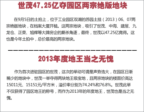 据了解,顺升企业为龙湖地产的马甲。龙湖地产早在2013年3月8日的苏州土拍会上,就将目光瞄准石湖地块,欲想进驻苏州房地产市场,但最终失之交臂。此次以总价25亿拿下狮山路地块,正式宣告龙湖地产入驻苏州!