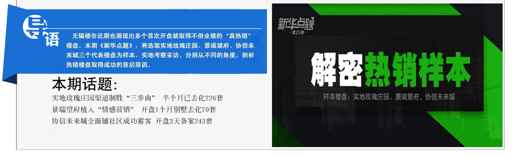本期《新华点题》选取实地玫瑰庄园、景瑞望府、协信未来城三个代表楼盘为样本,实地考察采访,分别从不同的角度,剖析热销楼盘取得成功的背后原因。