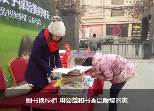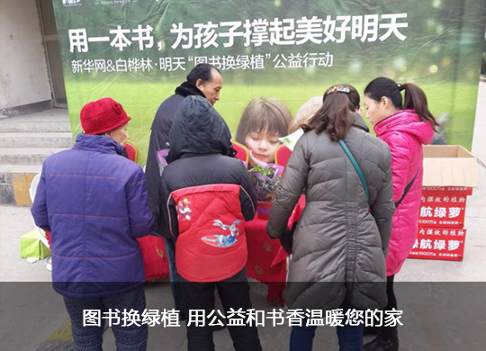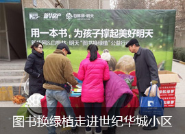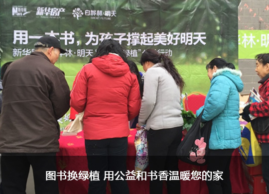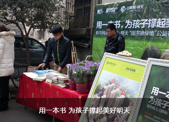 12月27、28日,由新华网新华房产西安站携手白桦林·明天开展的“用一本书,为孩子撑起美好明天”为主题的图书换绿植公益活动走进世纪华城小区。