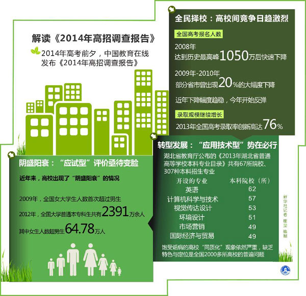 图表:解读《2014年高招调查报告》。 新华社记者 崔莹 编制