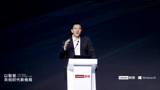 4月27日,第一届联想中小企业客户大会在杭州举办,联想集团执行副总裁兼中国区总裁刘军为中小企业智能化转型带来了新的解题思路和解决方案。