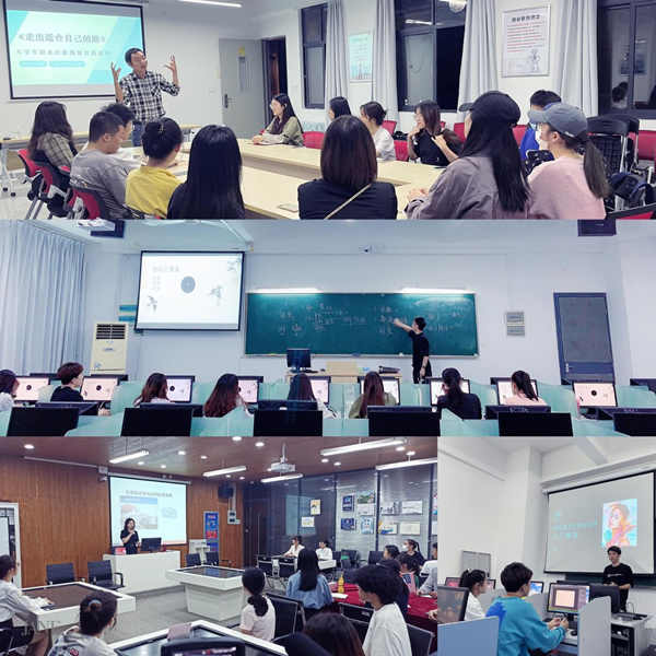 图为学生团队的职业规划、摄影、礼仪等微课程