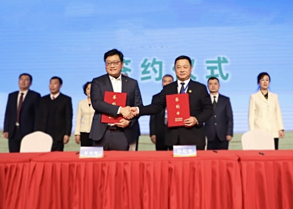 12月6日,“溯源中国·稻乡五常品牌数字经济高质量发展总平台”签约仪式在京举行。图为新华网移动互联网事业群总经理陈华(左),五常市委常委、市政府党组成员孙松宇(右)合作签约仪式现场。