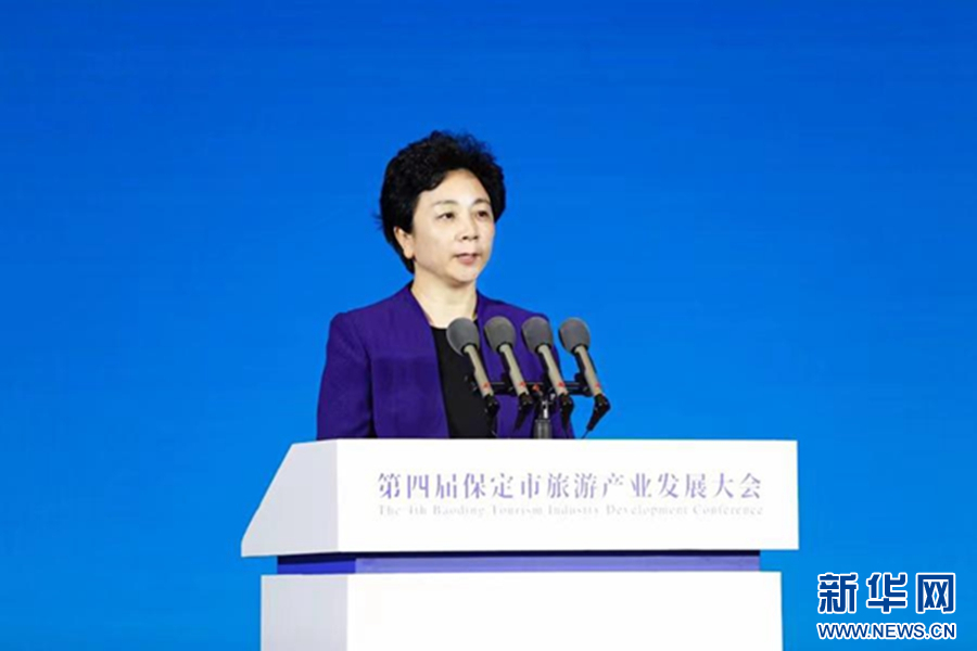 图为中共保定市委副书记、保定市人民政府市长闫继红进行文化旅游推介。新华网 毛鹤然摄