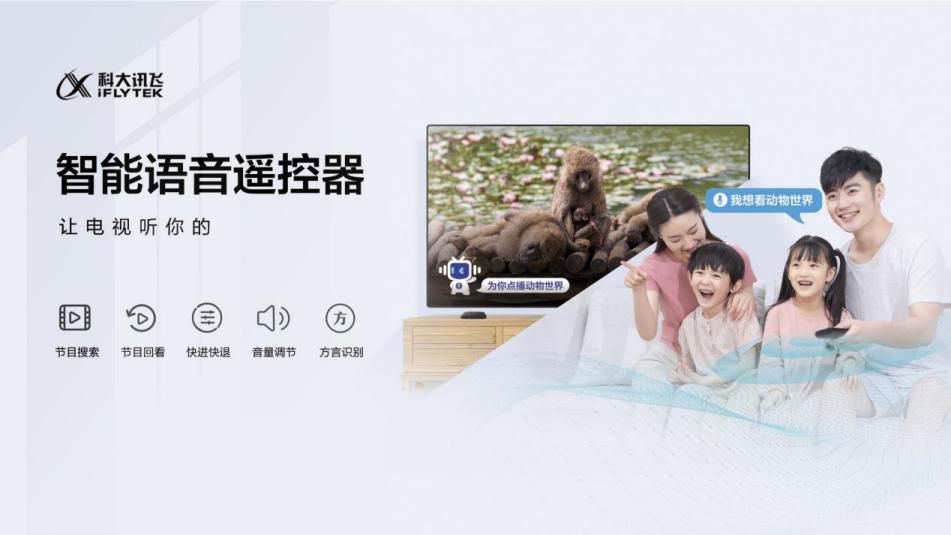在家庭看电视场景下,用物理遥控器搜索节目体验很差,尤其对家里的老人、小孩而言,这是一直以来存在的一个痛点。科大讯飞智慧家庭推出具有电视大屏语音交互功能的语音遥控器改变机顶盒传统的人机交互方式,通过语音节目切换、影视搜索等功能,让电视所见即可说,所说即可得,极大方便了用户与电视的搜索交互,提升了用户体验。同时科大讯飞智慧家庭围绕着家庭全场景面向“一老一小”的用户群体提供居家康养、语言学习、生活娱乐、全屋智能解决方案等产品服务。