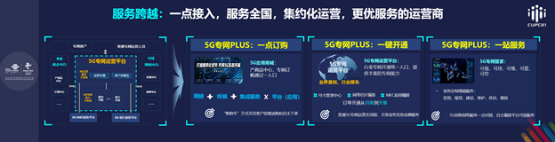 在服务跨越方面,中国联通秉承“一点接入、服务全国”的集约化运营理念,全面升级5G应用商城和5G专网运营平台,让行业客户买的舒心、建的省心、用的放心,做更优服务的运营商。