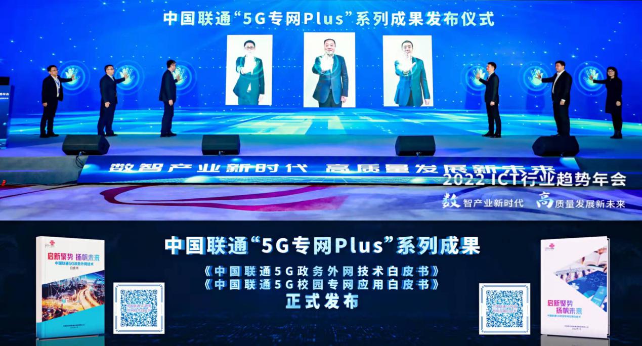 1月6日,在以“数智产业新时代,高质量发展新未来”为主题的2022 ICT行业趋势年会上,中国联通携手产业合作伙伴共同发布了“5G专网PLUS”系列成果——《中国联通5G政务外网技术白皮书》和《中国联通5G校园专网应用白皮书》。