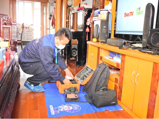 “春节临近,我们也切实体会到居民对家庭网络的需求变大了,每天要上门服务十多家客户,客户当日需求尽可能当日处理,为居民连接上高品质移动网络,快快乐乐过新年!”普陀区普陀西网格的“包师傅”小张说。
