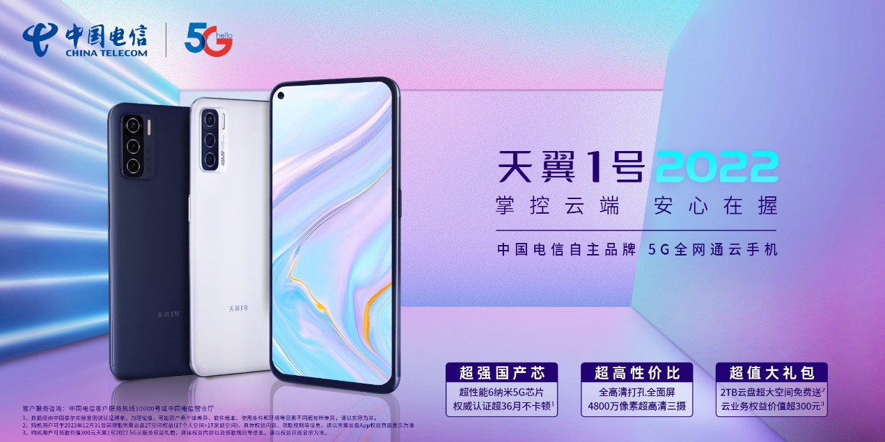 一是硬核技术,天翼1号2022采用国产6nm 5G芯片,可达36个月卡顿无忧,这也是在火箭发射现场天翼1号2022保障传播的关键技术。二是超高性价比,6.5英寸90Hz高刷新率、FHD+全高清挖孔屏、4800万像素超高清三摄、5000毫安时超大电池和7.9毫米超轻薄机身。三是5G功能新体验,全面支持5G消息和量子密话功能,畅享富媒体消息服务与安全加密通话服务。四是多项福利大礼包,300元中国电信云业务权益服务匹配。