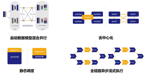 一流科技研发了自动数据模型混合并行、静态调度、去中心化和全链路异步流式执行四大核心技术,解决了大数据、大模型、大计算所带来的异构集群分布式扩展挑战。