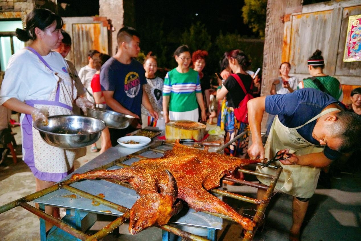 坪头村农家小院烤羊飘香。摄影丁小猫