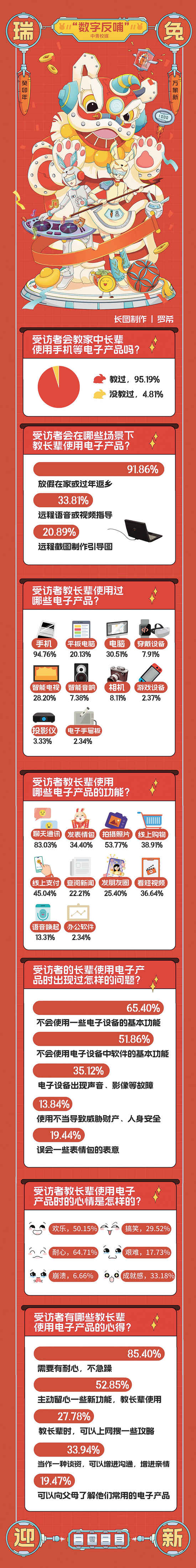 新兴技术飞速发展,一道“数字鸿沟”横亘在一些中老年人和数字生活之间,令他们无所适从。不过,随着“互联网原住民”长大成人,他们渐渐成为长辈的“小老师”,“数字反哺”也成为他们与长辈交流中的关键词之一。中国青年报·中青校媒面向全国各地大学生发起问卷调查,共回收来自142所高校学生填写的有效问卷3035份,95.19%受访者教过父母、祖辈或其他长辈使用电子产品,其中91.86%受访者会在过年返乡或放假回家时教长辈,远程语音或视频指导(33.81%)和远程截图、制作引导图(20.89%)的情况也时有发生。