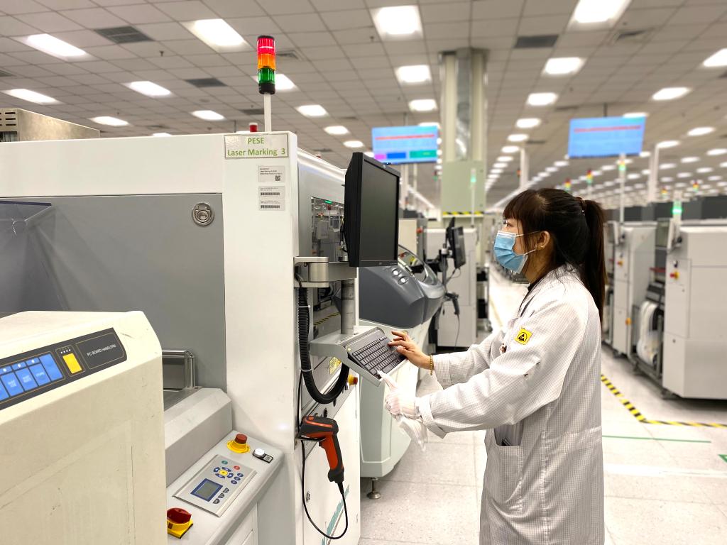 4月21日,纬湃汽车电子(长春)有限公司员工在生产车间操作智能设备。新华社记者司晓帅 摄