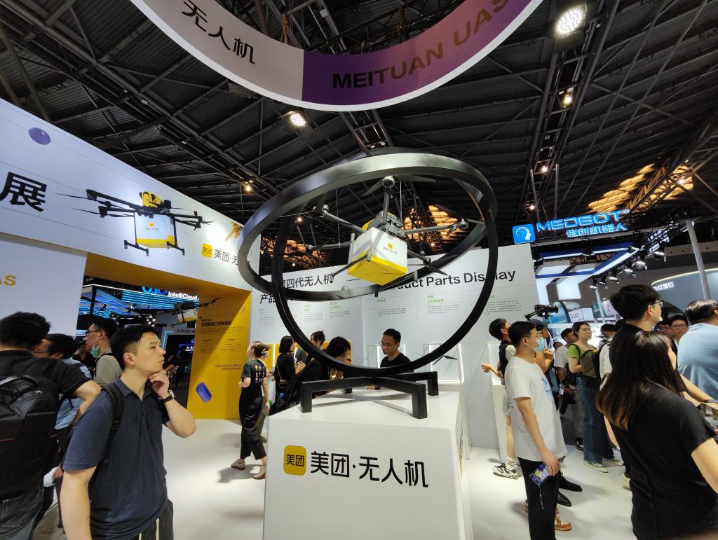 世界人工智能大会展会现场,美团展示了第四代新机型。美团无人机硬件负责人胡孟说:“第四代无人机配送距离最远可达5公里。”
