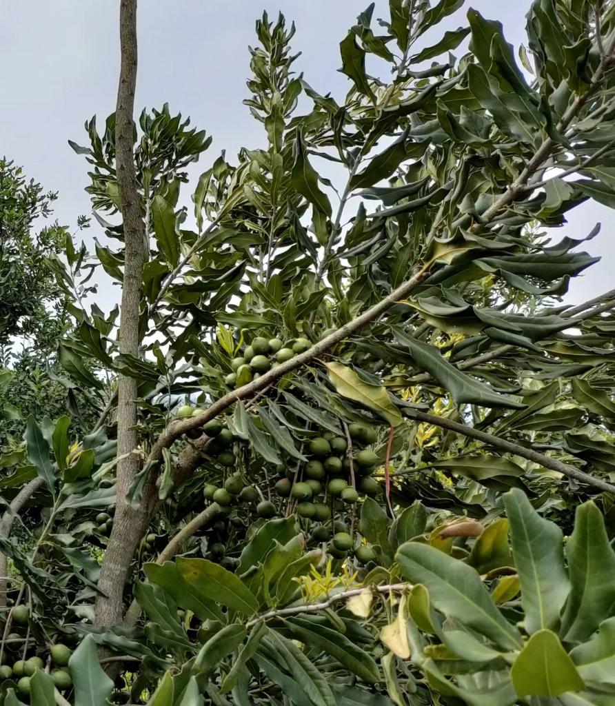 “现在一棵树的产量约40公斤,亩产值有七八千元。几年后进入丰产期,收入还会增加。”指着树梢上一串串沉甸甸的果实,四和村村民白行灵介绍,自家种植了25亩坚果,并套种了木薯、西瓜等经济作物,土地产值进一步提升。记者采访了解到,依托坚果等特色产业,去年四和村集体经济收入达36万元。