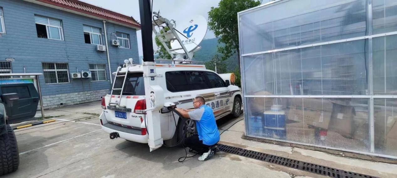 在房山区,中国电信卫星通信应急车开抵河北镇卫生院防汛指挥部,北京电信、中国电信卫星公司2名工程师迅速开通4G卫星通信车,实现周边区域电信信号覆盖,全力保障河北镇救灾通信需求。
