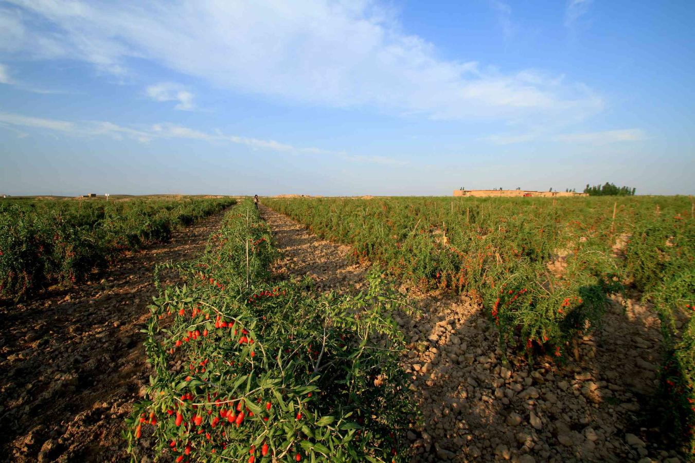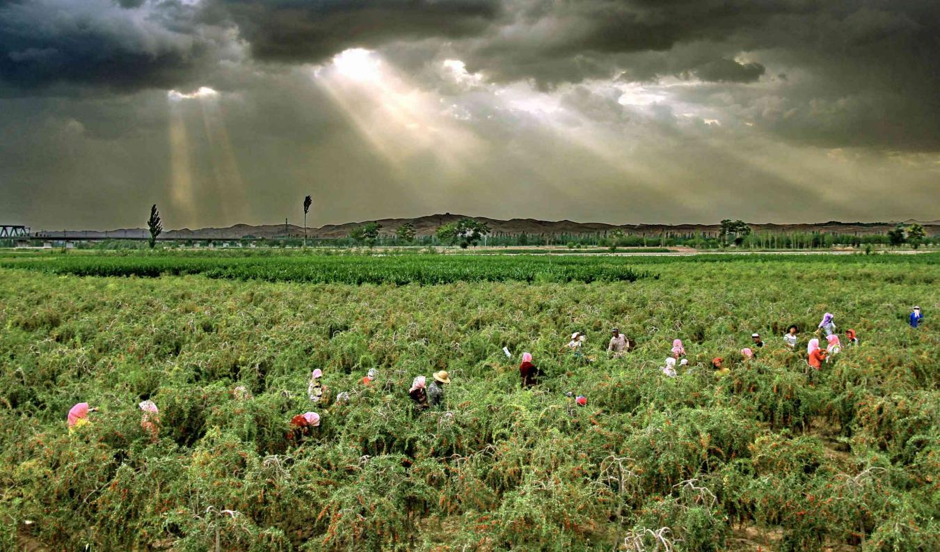 宁夏回族自治区中卫市中宁县独特的水土条件和光热资源催生了“中宁枸杞”这一富民产业、金字招牌,成就了“中国枸杞之乡”的美名。中宁属黄河冲积扇平原,土壤富硒且含多种矿物质元素;六盘山的清水河(弱碱水富含多种矿物质)和黄河水交汇灌溉;昼夜温差大,光照充足,干旱少雨,热量充沛,物候期长;中宁有六百多年的种植经验和技术成果积累,这些环境造就了中宁枸杞独特的品质。