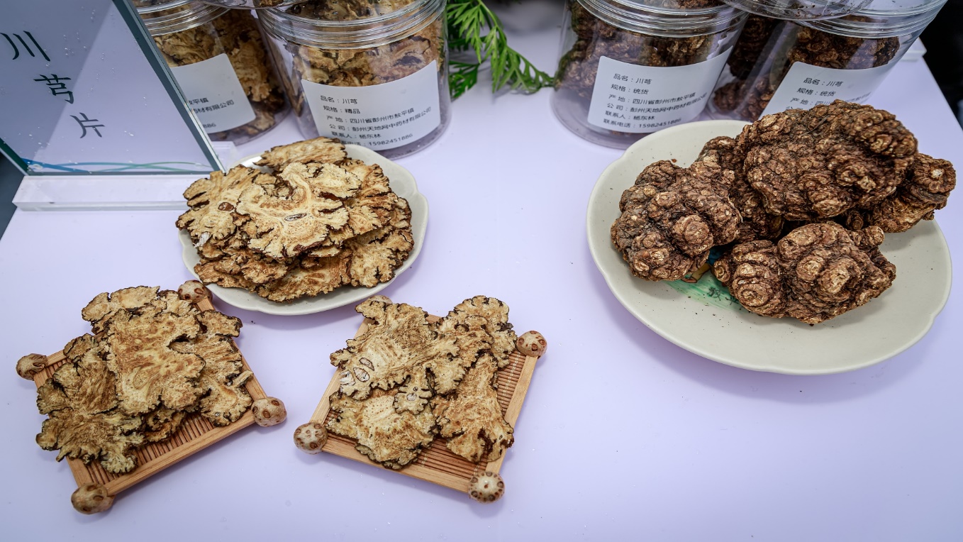 四川省道地药材名目众多,川芎主产于四川彭州,是伞形科中药材,香浓郁、味苦辛、微回甜、有麻舌感,可用于活血行气、祛风止痛疗效。同时,其茎叶口感与芹菜类似,可以用于烹煮汤肴,亦可烹草本茶。