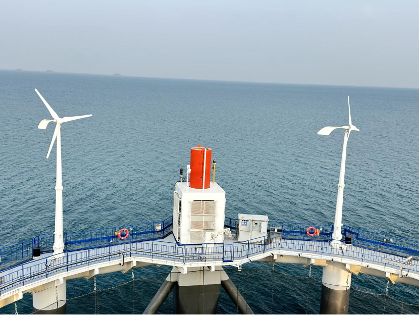 在“耕海1号”海洋牧场上,除了智能化养殖设备,还有生态环保高科技。水下环境监测系统依托5G技术,实现对水质环境亚毫秒级的水下超高清视频回传及水质监测数据收集传输,还可实时监测温度、盐度、流向等水质水文情况,海面气温、气压、湿度、风速和降雨量等气象情况,助力海洋生态环境保护。