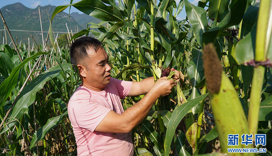 张庆尊在检查玉米的生长情况。牙举成 摄