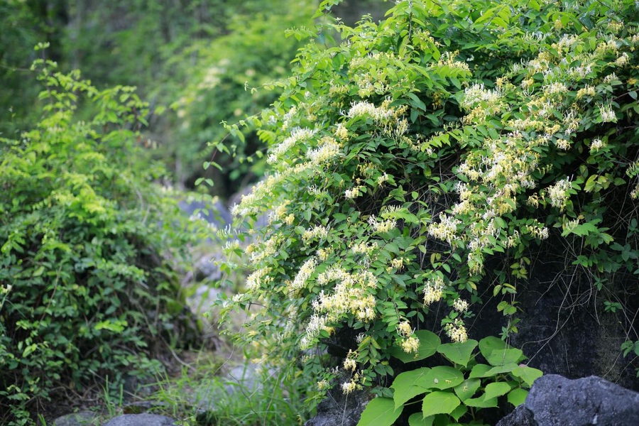 忻城县内石山遍布,土地稀少,如何让石山披绿、石缝生金?忻城探索将石漠化治理与经济发展有机结合的发展道路,引导群众选择“任豆+竹子”“任豆+桑树”“金银花纯林”等多种石山造林模式,当地农民在石缝里、山顶上种植金银花,同时在任豆、桑树下套种金银花,不仅绿了山头,还种出名气,带来了收益。目前,全县种植金银花总面积10.6万亩,产值超过8000万元。