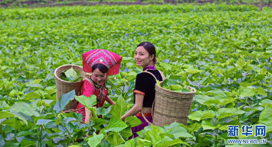 壮乡姑娘在采收桑叶。忻城县委宣传部供图