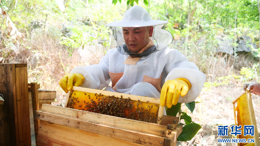 蜂农正在采收蜂蜜。忻城县委宣传部供图