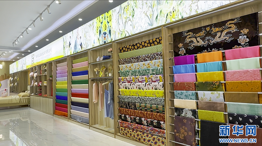 琳琅满目的桑蚕丝面料和床品。牙举成 摄