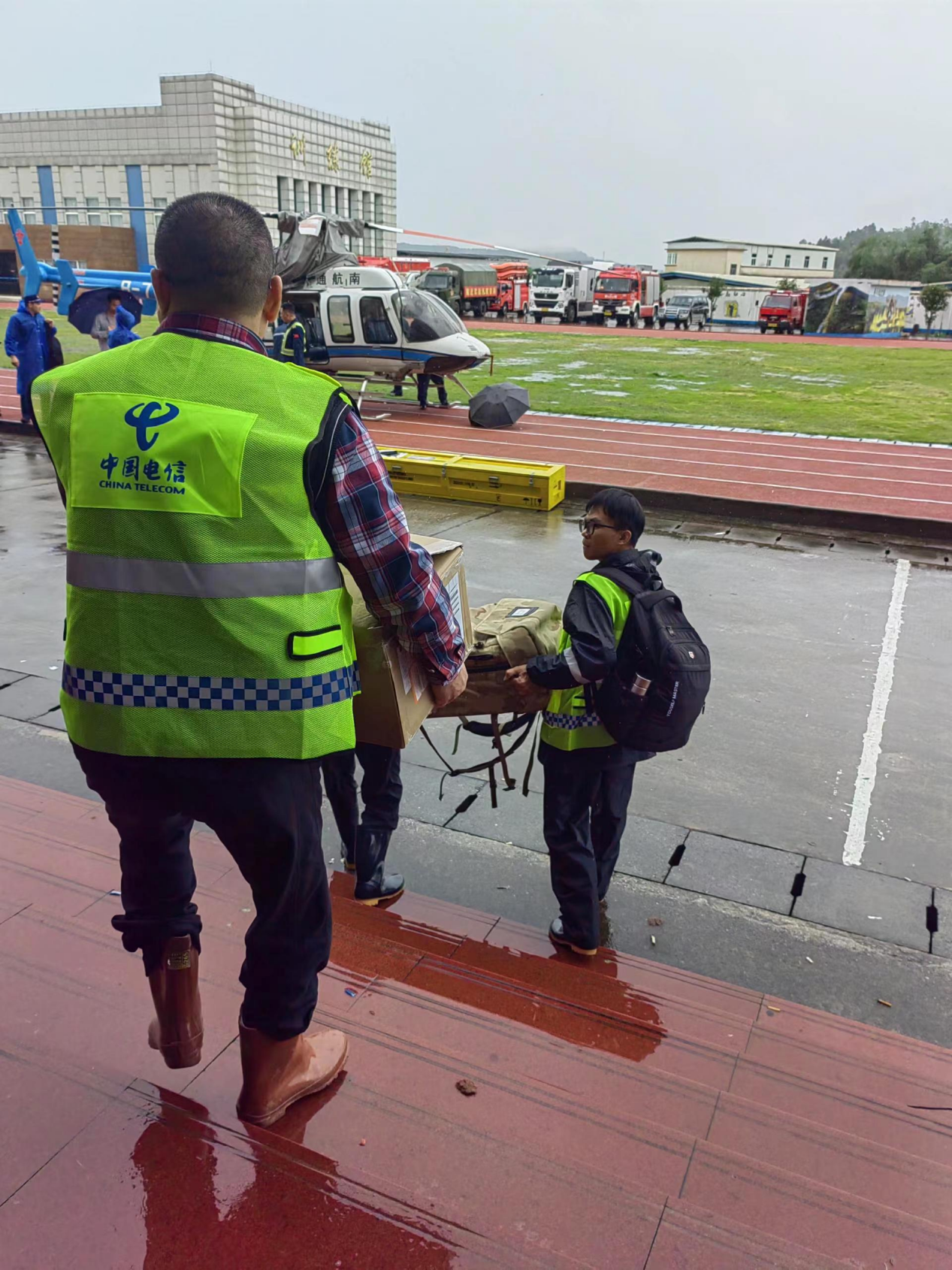4月20日12:40,中国电信广东韶关分公司紧急行动,派出应急保障小队驾驶2辆卫星应急车,携带天通卫星电话和卫星便携背包站前往灾区。4月21日,江湾镇部分地区通信仍未恢复,中国电信立即携带25台天通卫星电话和卫星便携背包站乘坐直升机进入灾区,成为首批抵达的运营商。中午12:38,所有卫星电话和卫星便携背包站全部开通,配合镇政府开展应急通信保障工作,同时广东电信从各地市调拨80余台天通卫星电话紧急交付韶关应急中心,随时投入使用。